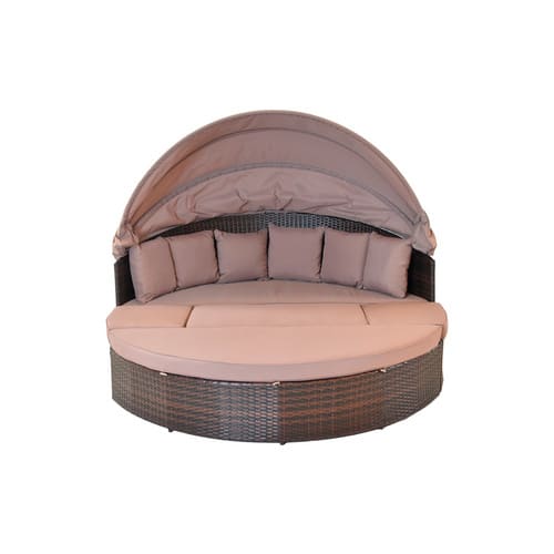 Das Herzstück der MERXX Relaxinsel »Riva« bildet ihr robustes Aluminiumgestell. Aluminium ist bekannt für seine Korrosionsbeständigkeit, was es zum idealen Material für den Einsatz im Freien macht. Selbst bei wechselnden Witterungsbedingungen behält Aluminium seine Form und Stabilität bei und benötigt nur minimale Pflege. Die Oberfläche ist witterungsbeständig pulverbeschichtet, was nicht nur eine attraktive braune Farbgebung erzeugt, sondern auch zusätzlichen Schutz vor Umwelteinflüssen bietet. Diese Beschichtung ist pflegeleicht und widerstandsfähig gegenüber Kratzern.