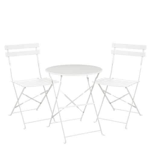 Die helle, freundliche Ausstrahlung des weißen Bistro-Sets erinnert an südländische Cafés und Gärten. Es schafft eine einladende und entspannte Atmosphäre, die zum Verweilen einlädt. Kombinieren Sie das Set mit bunten Kissen, einer kleinen Pflanze oder einer Lichterkette, um Ihren persönlichen Stil zu unterstreichen und Ihren Außenbereich in eine persönliche Wohlfühloase zu verwandeln.