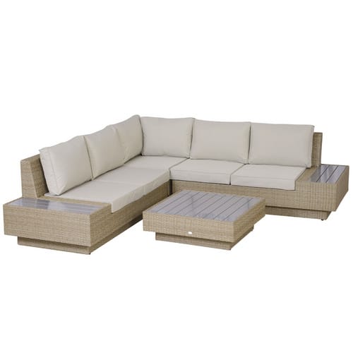Polyrattan, auch bekannt als Kunststoffgeflecht, hat sich in den letzten Jahren zu einem bevorzugten Material für Gartenmöbel entwickelt. Seine Beliebtheit verdankt es einer Kombination aus hervorragenden Eigenschaften, die es ideal für den Einsatz im Freien machen. Im Gegensatz zu Naturrattan ist Polyrattan äußerst robust und unempfindlich gegenüber wechselnden Wetterbedingungen. Es widersteht UV-Strahlung, was bedeutet, dass die Farbe auch bei intensiver Sonneneinstrahlung lange erhalten bleibt und nicht ausbleicht. Ebenso wenig beeinträchtigen Regen, Feuchtigkeit oder Temperaturschwankungen das Material. Es nimmt kein Wasser auf, wodurch es vor Verrottung und Schimmelbildung geschützt ist. Die Reinigung gestaltet sich denkbar einfach: Ein feuchtes Tuch und gegebenenfalls ein mildes Reinigungsmittel genügen, um Schmutz und Staub zu entfernen. Dies macht Polyrattan-Möbel zu einer pflegeleichten und zeiteffizienten Wahl für alle, die ihren Außenbereich genießen möchten, ohne sich um aufwendige Instandhaltung kümmern zu müssen. Das feine Geflecht ahmt die Optik von Naturrattan täuschend echt nach und verleiht dem Outsunny Gartenmöbelset eine natürliche und warme Ausstrahlung, die sich harmonisch in die Umgebung einfügt.