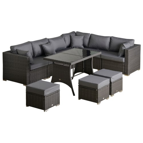 | Produktname | Outsunny Gartenmöbelset, 8 Sitzplätze, Metall/PE/Polyester – grau |