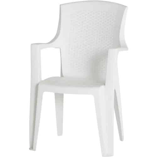 | Design-Merkmale | Zeitlose, klare Linienführung, ergonomisch geformte Rückenlehne und Armlehnen für optimalen Sitzkomfort. Elegante weiße Farbgebung fügt sich harmonisch in jede Außenumgebung ein. |