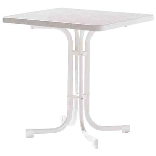 Entdecken Sie den SIEGER Gartentisch mit den Maßen 70 x 70 x 72 cm – eine ideale Lösung für alle, die Wert auf platzsparende Eleganz und langlebige Qualität legen. Dieser Tisch, dessen weiße Mecalit-pro-Tischplatte sich nahtlos in jedes Ambiente einfügt, ist perfekt für kleinere Terrassen, Balkone oder als charmante Ergänzung in Ihrem Garten. Er bietet eine zuverlässige und stilvolle Oberfläche für Kaffeepausen, Mahlzeiten im Freien oder gesellige Runden mit Freunden.