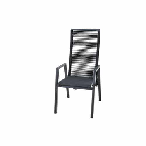 Das Besondere an diesem Modell ist die umlaufende Rundkordel-Bespannung in einem eleganten Mix aus Anthrazit, Schwarz und Grau. Diese hochwertige Polyrattan-Kordel ist UV-beständig und wetterfest, was eine lange Freude an der Farbechtheit und Formstabilität sicherstellt. Die Kordel ist nicht nur ein optisches Highlight, sondern bietet auch einen angenehmen Sitzkomfort. Sie umschmiegt den Körper und verteilt das Gewicht gleichmäßig, was ein Gefühl von Leichtigkeit und Entspannung vermittelt.