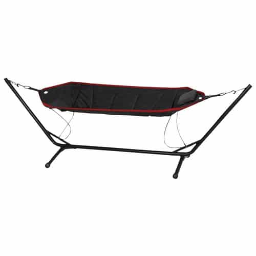 - Platzsparend und dennoch einladend: Obwohl sie eine großzügige Liegefläche bietet, nimmt die Hängematte im aufgestellten Zustand vergleichsweise wenig Platz ein und lässt sich oft nach der Saison platzsparend verstauen.