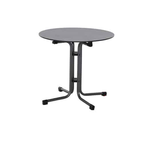 Der Tisch »Sola« mit seiner modernen grauen HPL-Platte und den Maßen von 80 x 70 x 80 cm passt hervorragend zu einer Vielzahl von Gartenstühlen. Besonders gut harmonieren Stühle aus Teakholz, Aluminium, Kunststoff oder mit Polsterbezügen in dezenten Farben, die den eleganten Charakter des Tisches unterstreichen.