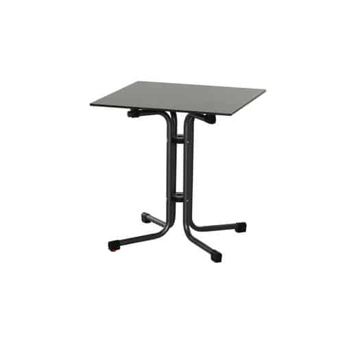 Der Tisch ist mit einem robusten Gestell ausgestattet, das für gute Stabilität sorgt. Die quadratische Form und die bewährte Konstruktion gewährleisten, dass der Tisch sicher und kippsicher steht, wenn er ordnungsgemäß aufgebaut ist.