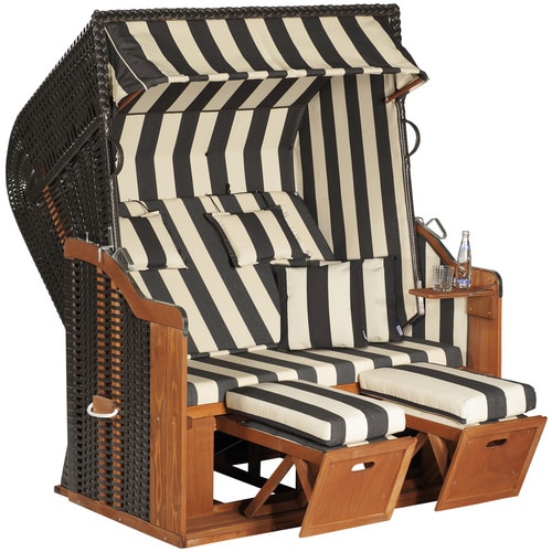 - Dekorative Elemente: Oftmals sind Strandkörbe mit Zierkissen, Nackenrollen oder einer aufklappbaren Deichsel ausgestattet, die nicht nur den Komfort erhöhen, sondern auch das ästhetische Erscheinungsbild abrunden.