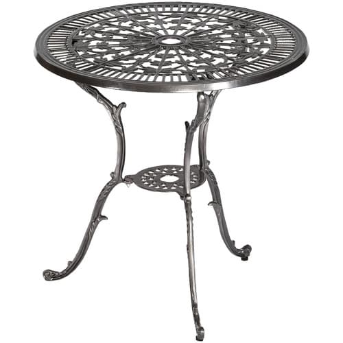 Der Tisch »Lugano« mit einem Durchmesser von 70 cm und einer Höhe von 68 cm ist die ideale Ergänzung für kleinere Balkone, gemütliche Sitzecken im Garten oder als Beistelltisch auf Ihrer überdachten Terrasse. Seine pflegeleichte Aluminium-Tischplatte in elegantem Grau fügt sich harmonisch in jedes Outdoor-Ambiente ein und bietet eine robuste und langlebige Oberfläche für Ihre geselligen Stunden im Freien.